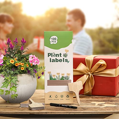 100pcs Plant Labels, Garden Plant Markers, Plastic T-Type Plant Tags, Waterproof Garden Signs for Outdoor Garden Plants Garden Potted Plants (3.9” x 2.4”)