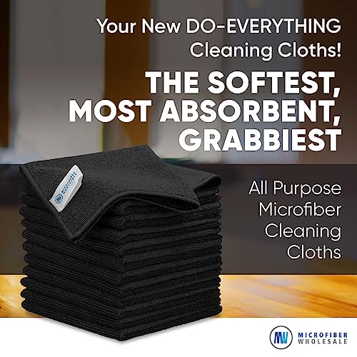 12″ x 12″ Buff Pro Multi-Surface Microfiber Cleaning Cloths | Black – 12 Pack | Premium Microfiber Towels for Cleaning Glass, Kitchens, Bathrooms, Automotive, Supplies & Products